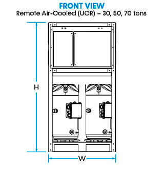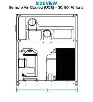 Each module is designed to be field piped to a matching remote air cooled or evaporative condenser and eliminates the need for a cooling tower. This helps preserve space as well as lowering building water usage and treatment needs. Design offers efficiencies up to 10.9 EER at full-load and up to 17.5 EER at part-load (IPLV) exceeding ASHRAE 90.1 minimum efficiency requirements.
