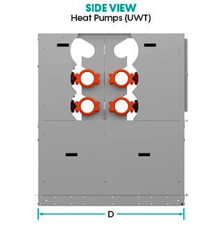 The high-temperature heat pump utilizes a refrigerant reversing valve to provide heating and cooling operation compatible with boiler/tower and geothermal systems. The heat pump system reaches efficiencies up to 16.3 EER, exceeding ASHRAE 90.1 minimum efficiency requirements.