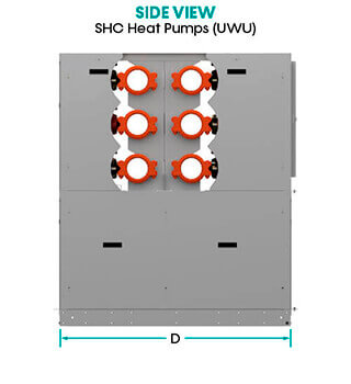 Simultaneous Heating and Cooling (SHC) units can achieve cooling efficiencies up to 25 EER and heating efficiencies up to 5 COP to potentially lower system energy costs by more than 50% compared to traditional boiler/chiller systems. Each module can be indexed for heating and/or cooling onDEMAND® regardless of its position in the bank, to precisely match building loads and provide optimum module/ compressor run time equalization. Piping connection flexibility for hot, cold, and source water loops allows same- or opposite-end configurations based on mechanical room needs.